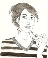 Pour ceux qui croiraient que je me suis représentée ici, je vous arrête tout de suite: je ne suis pas aussi bien foutue! Dans ce dessin, il n'y a que la coiffure qui représente la réalité.